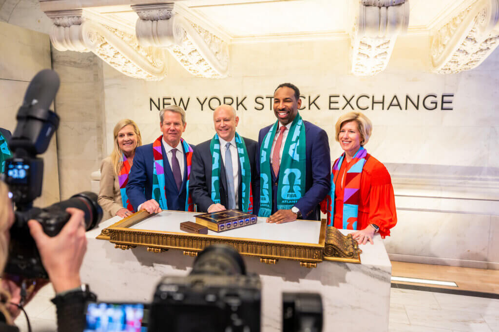 With 100 days to go until FIFA World Cup 2026, leaders from across Georgia and metro Atlanta stepped onto the global stage. The Metro Atlanta Chamber invited 120 leaders from the region’s business community, alongside state and city leadership, to ring the Opening Bell at the New York Stock Exchange, marking a milestone for both Georgia and the tournament. Participating in the moment were Georgia Governor Brian Kemp; First Lady Marty Kemp; Georgia Lieutenant Governor Burt Jones; Atlanta Mayor Andre Dickens; Katie Kirkpatrick, president and CEO of the Metro Atlanta Chamber; Dan Corso, president of the Atlanta Sports Council; and members of the business community.