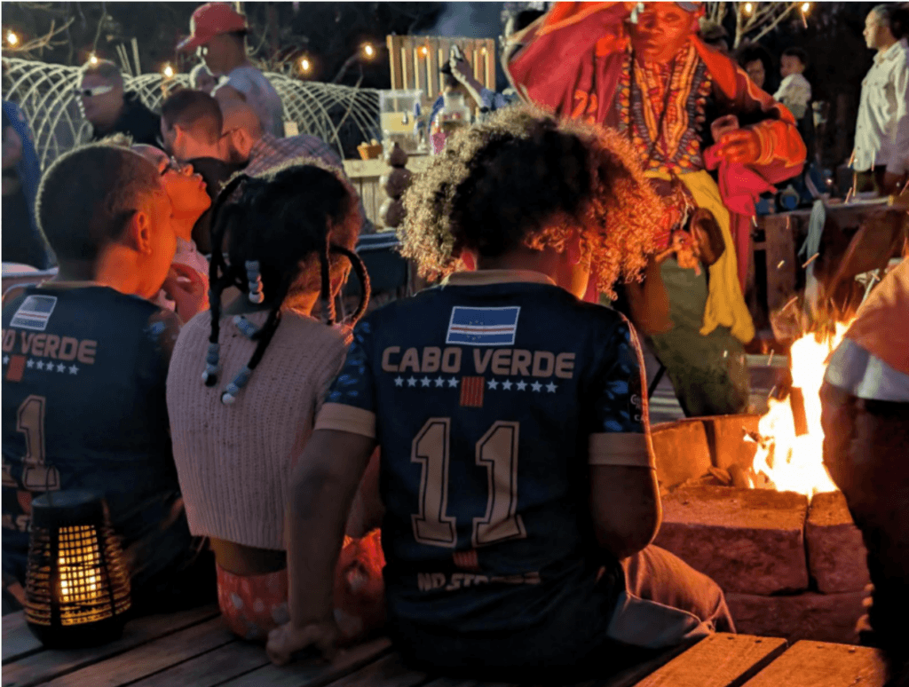 Across the yard, the music grows louder. Cabo Verdean music, shaped by African, Portuguese, and Caribbean influences, carries a deeply rhythmic sound.