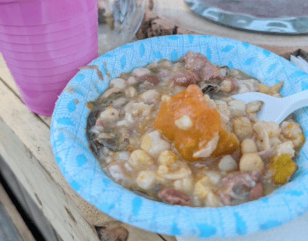 But now, back to the neighborhood. Before the music turned up, the backyard already smelled of wood smoke and slow-cooked stew. Large pots simmered over open flames while the honorary chefs stirred patiently. Inside one pot was cachupa, Cabo Verde’s national dishcachupa, Cabo Verde’s national dishVerdean – a rich stew made from hominy corn, beans, vegetables, and marinated meat or fish. Nearby, another pot held jagacida, a flavorful dish of rice and beans often mixed with pork or linguica sausage.